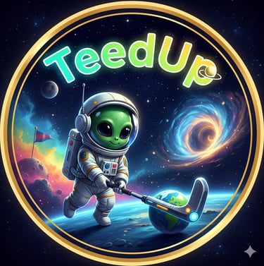 TeedUp isn’t about simple gains—it's about a grand adventure. Our mission is to combine the best of meme culture with a universe-sized vision. We're launching into the unknown, not with a rocket, but with a comically oversized golf club, aiming for a wormhole that promises new beginnings.